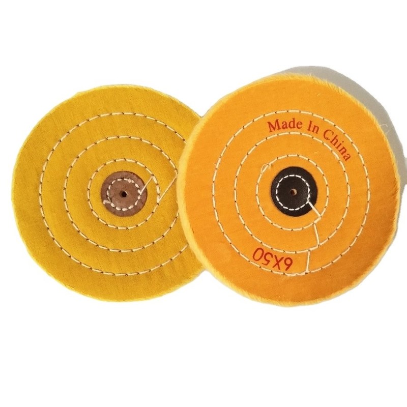 Gepersonaliseerde schijf katoen gele stof polijst spiraal genaaid polswielen voor polijsten 6